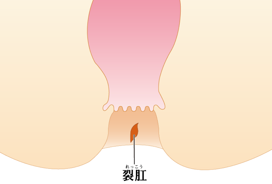 肛門の表面の皮膚が浅く切れている状態です。 排便のたびにピリッとした痛みを感じることがありますが、多くは薬や生活改善で自然に治ります